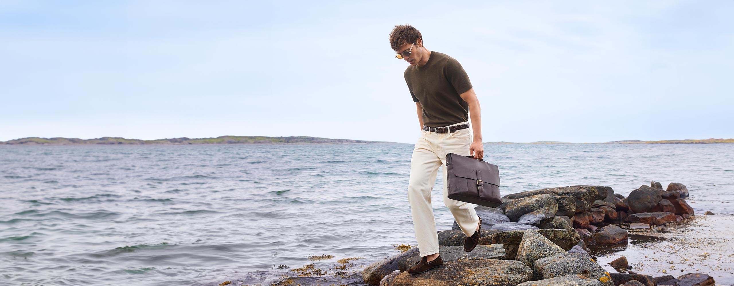 Upptäck sommarens accessoarer från Saddler – där hantverk och passion för läder förenas i en hyllning till den svenska kustens råa skönhet. Välj bland utvalda accessoarer i jordnära färger och robusta strukturer. Från rymliga väskor till stilrena bälten – detaljerna som gör dig redo för sommaren och fulländar din outfit, från en klassisk vit skjorta till avslappnade, svala plagg i linne.